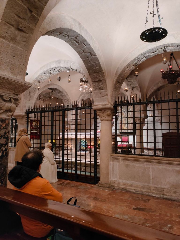 Mi e’ capitato tantissime volte di andare in Basilica a Bari a ” cercare ” San Nicola e tutte le volte ho avuto la sensazione di ritrovarmi, se pure persa nella grandezza del luogo, ritrovarmi dicevo in un grandissimo abbraccio accogliente. Ieri sera, complice il freddo, non vi era tantissima gente ed ho avuto la sensazione di essere attesa, di certo a parole non so spiegare questa cosa ma scesa nella cripta, il silenzio, il profumo delle candele amplificava la percezione bellissima di pace. Era infatti il primo giovedì del mese e perciò veniva celebrata la ” messa dei miracoli ” dove si va per domandare cose piccole e grandi senza contenersi perché sai gia’ che qualcuno ti ascolta. Certe volte io credo che i Santi stiano lì presso Dio a ripetere infinite volte il nome nostro fino ad essere ascoltati. Ecco così mi sembrava San Nicola ieri sera, in ascolto, ed e’ stata una sensazione netta e bellissima perche’ quando sai che qualcuno ti guarda il cuore riposa e quando riposa mostra il lato più bello ed allora domanda, per se ‘ e per i suoi cari, e così facendo un po’ alla volta si chiede per tutti e quasi in estensione si può arrivare a coprire il mondo intero! Credo che la preghiera certe volte sia’ un riverbero ……